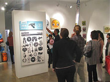 Rock Jackson, in his 2011 solo exhibit DonuPop 2: Rockets Robots Donuts, uses objects such as a shopping cart, 7ft toy robot, 13ft inflatable donut and 11 ft rocket made of tarp to explore Hip Hop's impact on pop culture. It acknowledges one of the most important rhythmic innovators in modern music history, J Dilla & His magnum opus the Donuts album.